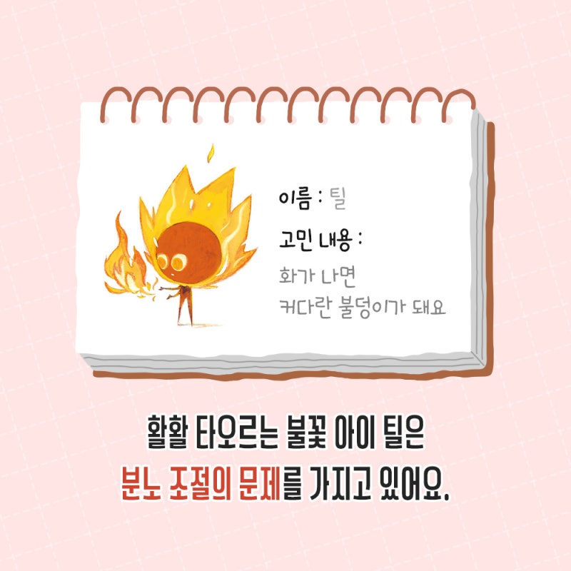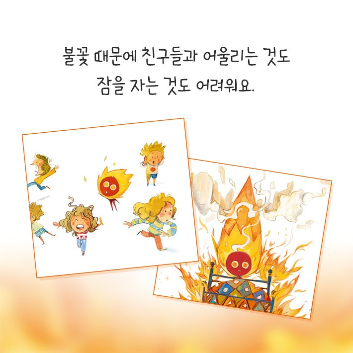 누구에게나 스스로 통제하기 어려운 감정이 있습니다. 그것은 분노, 두려움, 슬픔, 질투일 수 있습니다. 뜨겁게 타오르는 불꽃아이 틸의 이야기를 통해 때로는 힘들 때도 있는 감정에 익숙해지는 방법을 알려드립니다. 감정이 불타는 아이들을 위한 그림책 처방전 <불꽃아이>.