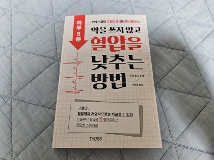 하루 5분, 약을 쓰지 않고 혈압을 낮추는 방법책 첫장을 펼치자마자 고혈압이거나 예비 고혈압 또는 가족력이 있는 사람들에게 솔깃할 것 같은 문구가 딱 보였다.