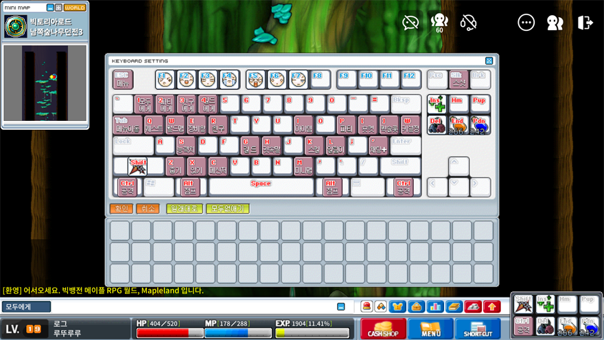 메이플랜드 모바일에 접속하기 전, 먼저 메이플랜드 PC에 접속하세요. 여기서 기본 키 설정을 확인해보면 Ctrl 공격, Z 픽업, Ait 점프가 있는 부분이 있을 겁니다. 모바일에서는 이 세 가지 키만 사용할 수 있습니다.