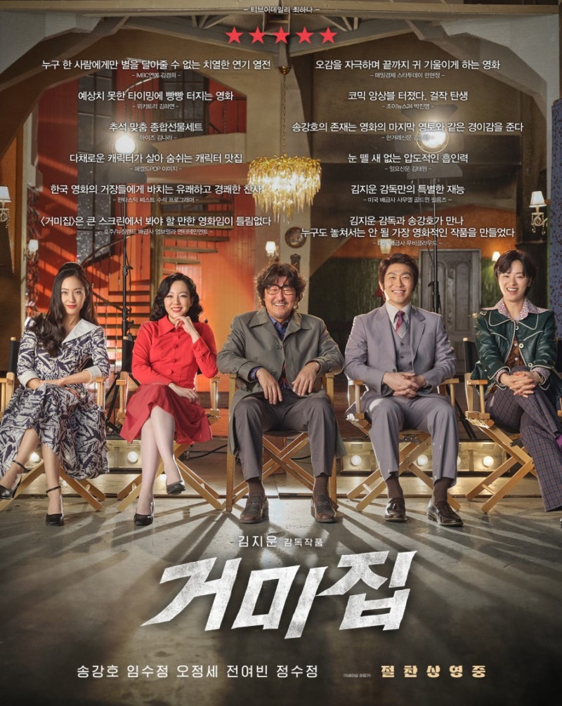 한국 문화예술계가 암울했던 1970년대, 데뷔작의 흥행으로 차기작에 대한 부담감이 컸던 주인공 김강호 감독은 달라져야만 했다. 이미 촬영된 새 영화의 결말을 조금만 보면 진정한 명작, 명작이 될 것이다. 이런 일이 일어날 것이라는 믿음으로 단 이틀 동안 추가 촬영을 강요하면서 펼쳐지는 파국을 포착한 작품이다. 즉, 이 작품 자체가 추가 촬영을 강요한 김 감독과 힘들게 모은 배우들의 캐스팅을 담아낸 현실의 이야기인 셈이다. 영화에 삽입된 연기와 허구의 이야기도 상당 부분 등장하는 극중극을 대표하기 때문에 극중극 여부에 따라 컬러와 흑백 화면의 대비가 나타난다. -a-play가 나타날지 여부. 그리고 영화 제목처럼 결말 부분에서 볼 수 있는 거미, 거미줄의 등장 등 판타지적인 요소들은 일반 상업영화와도 비교할 수 없을 만큼 독특하고 기괴하다. 나는 그것이 바로 그것이라고 말하는 것이 안전하다고 생각합니다. 물론 이 작품 역시 상업영화의 틀에 속하지만, 추석 연휴에 개봉한 다른 두 작품과 비교하면, <1947 Boston> 그리고 그에 비해 상업영화보다는 예술영화에 더 가깝다고 생각합니다. 초호화, 초호화 영화였죠, 오직 영화배우만을 위해 만들어진 영화 + 배우 송강호. 배우 송강호, 임수향 등 뛰어난 연기력을 갖춘 유명 배우들이 출연하는 이번 작품에서는 극의 주인공인 김 감독 역을 맡은 배우 송강호의 존재감을 느낄 수 있다. 공개된 메인 포스터만 봐도 느껴지는 수정, 오정세, 전여빈의 모습. 그의 매력은 타의 추종을 불허했습니다. 즉, 데뷔작은 확실히 흥행했지만 차기작에 대한 심적 부담 + 믿고 따르던 멘토 ‘신 감독’을 따라가고 싶은 마음이 들었다. 그는 탐욕에 사로잡힌 단순한 인간이었습니다. 나는 그것이 그 이상은 아니라는 것을 매우 분명하게 드러냈다고 생각합니다. 개인적으로 영화 자체가 송강호 배우의 원맨쇼가 될 수 없는 요소를 가지고 있었는데, 이제 그 배우를 제외한 나머지 출연진은 배우 정수를 제외하고는 그다지 눈에 띄지 않는다. -‘한유림’이라는 암(?) 캐릭터를 연기한 정. 눈에 띄는 존재감과 매력을 보여준 배우가 없다는 점이 아쉽고, 단점이라면 단점으로도 볼 수 있다. 영화 .. 엔딩/해석리뷰 + 김감독은 정우성의 손톱도 따라잡지 못했다. (FEAT. 욕심이 가득. 아주…) 배우 정우성이 맡은 ‘신감독’이 등장하는 장면만 봐도 알 수 있다. 설정이 매우 어렵지만, 엔딩 직전 플래시백 장면을 통해 밝혀지는 그날의 진실은 주인공 김감독과 김열의 탐욕과 욕망을 완벽하게 대변한다. 즉, 화재로 인해 그들이 사망한 것입니다. <<의 스승인 김 감독이 세상을 떠났고, 유명 감독의 대열에 오르기를 기다리고 기다리던 김열이 몰래 스승의 대본을 훔쳐 이 작품을 제작했는데, 이 작품은 성공적인 데뷔작이다. 이후 혼자서 대본이나 연출을 완성하지 못한 김 감독은 차기작에 대한 부담감과 스트레스를 계속 느꼈고, 이러한 감정이 최고조에 달했던 지점이 바로 불씨였다. 결말은 영화를 마무리하면서 김열의 광기를 확인시켜준다. 상황에 휘말렸음에도 불구하고. 그리고 가족 모두가 거미줄에 묶여 죽음을 맞이하는 극중 결말 역시 탐욕과 욕망에 사로잡힌 한 남자의 이야기다. 김열의 현재 모습과 어두운 미래를 200% 반영한 장면이라고 생각한다. 영화에 대한 간략한 리뷰를 작성해봤습니다 는 12월 29일부터 넷플릭스에서 시청 가능하다. 생각보다 훨씬 좋은 영화이고 볼만한 영화이니 평일/주말에 한번쯤은 꼭 보셨으면 좋겠습니다.+ OTT/VOD 시청 – 현재 Netflix를 통해서만 이용 가능합니다. 한마디: 독특한 영화인 만큼 독특하고 재미있기도 하다. 거미의 집 감독 김지운 출연 송강호, 임수정, 오정세, 전여빈, 크리스탈, 박정수, 장영남, 김민재, 김동영 , 김재건 2023년 9월 27일 개봉. 연말, 연초에 보기 좋은 넷플릭스 인생영화 추천 5편. 이제 2023년의 끝과 2024년의 시작이 일주일도 안남았으니 새해의 끝… blog.naver.com Movie 사진/예고편 출처는 네이버▼클릭!! 팬이 되어주세요