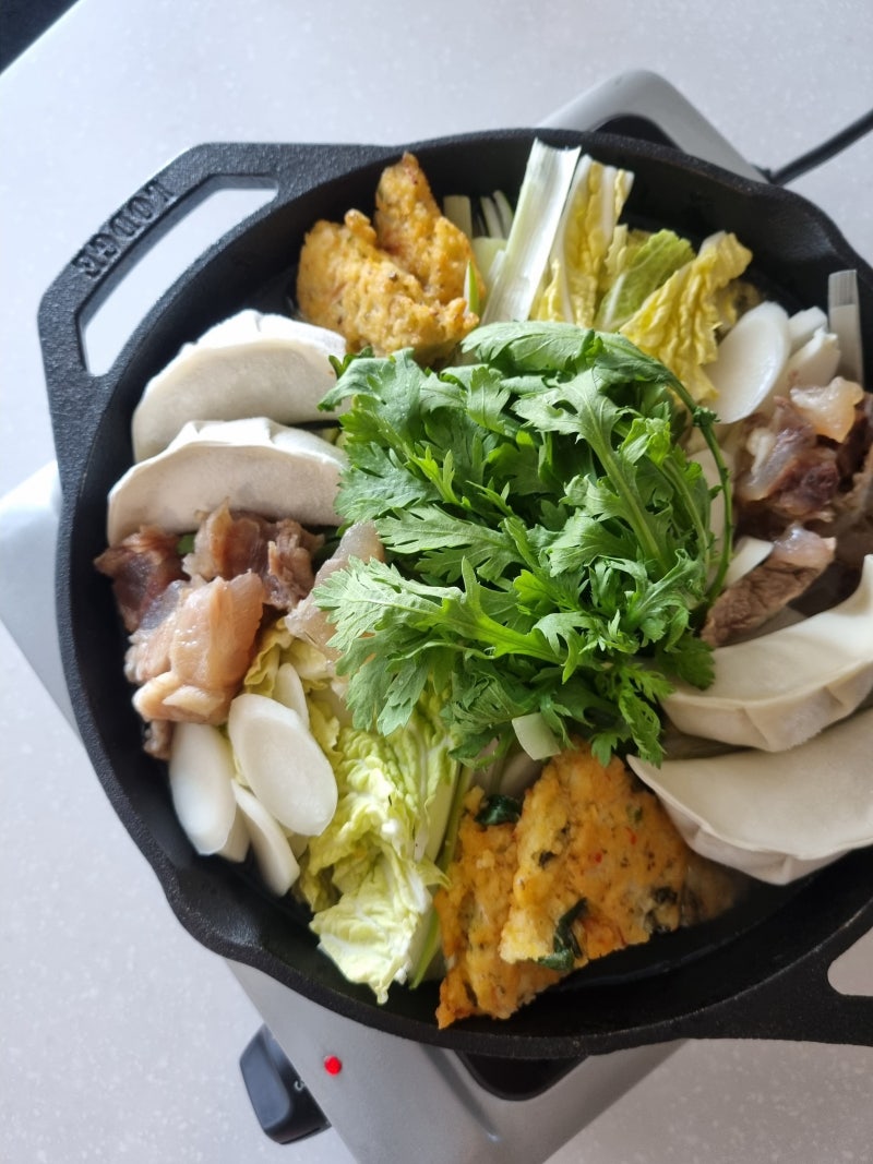 1월 1일 떡과 만두국. 지난번 만두를 만들때는 만두피가 부족해서 만두를 만들었어요. 떡국을 같이 끓였는데, 좀 어색한 느낌이 들었죠? 그래도 사랑하는 사람과 함께 맛있는 굴깍두기 한그릇을 먹었습니다.