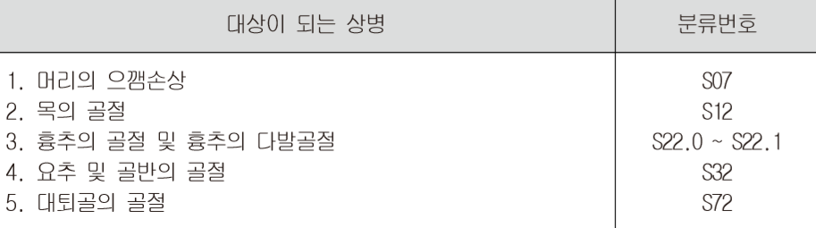 5 골절 코드. 5가지 코드 중 하나라도 부상의 원인으로 진단돼 수술로 이어져야만 보험을 받을 수 있다. 확인해야 할 부분으로 동일한 부상의 직접적인 원인으로 골절상태가 2개 이상 발생한 경우 보험금은 1회만 지급됩니다.